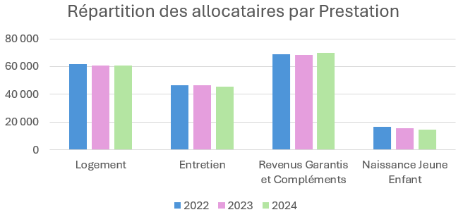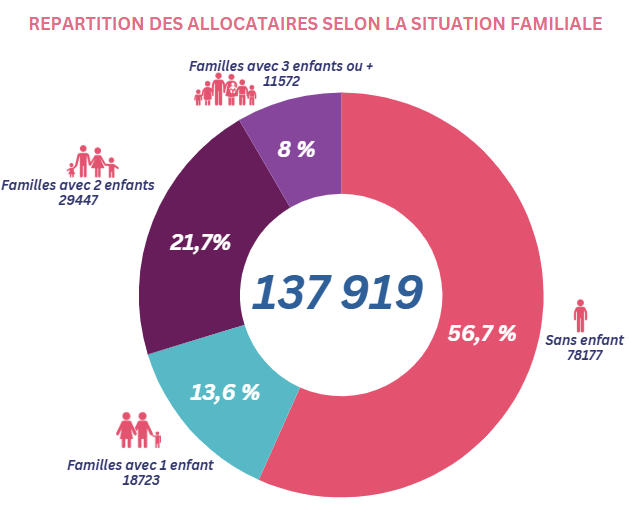 L'Edito du Président et du Directeur Typologie de nos allocataires Le nombre d’allocataires à la Caf 63 est plutôt stable avec une augmentation de seulement 0,2 % par rapport à 2023 (soit + 287 allocataires).