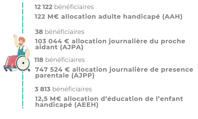 Nous constatons une augmentation des allocataires bénéficiaires de « Revenus Garantis et Compléments » (+ 2 %) et particulièrement des bénéficiaires de l’Allocation Adulte Handicapé (AAH) + 5,5 %.